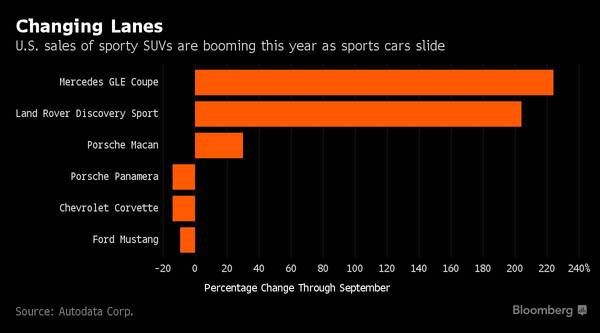 买家偏爱新的轿跑型SUV,野马和保时捷则显出颓势