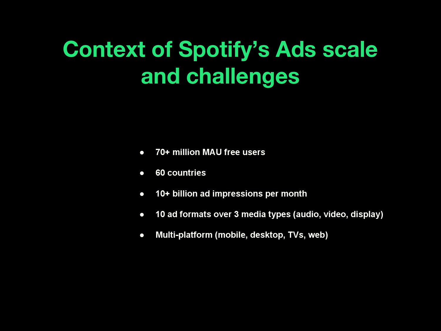 Spotify广告系统架构演进 报告下载:添加199IT官方微信【i199it】,回复关键词【Spotify广告系统架构演进】即可 来自:infoQ 报告下载:添加199IT官方微信【i199it】,回复关键词【Spotify广告系统架构演进】即可 更多阅读:分析:网络广告系统总结广告系统研究——力美广告平台IMmob广告系统研究—Google AdMobTwitter升级广告系统 细分受众定向透过Spotify看看腾讯音乐的未来Spotify:如何进入播客Spotify:音乐流媒体王者转亏为盈之路还有多远?Spotify收购Seed Scientific数据分析公司 提高音乐推荐准度流媒体音乐巨头Spotify改版:将整合视频功能Spotify称赶超苹果只是时间早晚的事免费模式与免费音乐服务 Spotify在线音乐分成 Spotify是这样给的Apple Music在美订阅用户数量已超Spotify谷歌云:2025年全球故障致1.3万用户报告中断Netflix:调查称77%美国人更愿接纳数字资产 而不是基于订阅租赁的流媒体