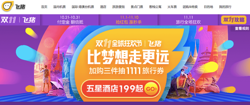 今年双11变得越来越不同,更多的人开始准备“剁脚”买旅行产品,辐射范围从实物电商到服务电商的过度更加明显,在线旅游业带来的惊喜也越来越多。
