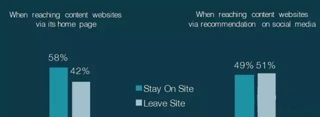 此外,在曝光时长上的数据也相当呼应。58%的用户(图2)在通过网站引流到达的页面上比社交网络渠道停留得更久。