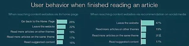 图4:用户在阅读完一篇文章后的行为偏好。左侧为通过社交网站引流到达的页面;右侧为通过网页引流到达的页面。