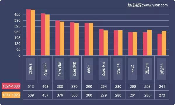 点评:本周运营平台开服排行前三为:37游戏、360游戏、顺网游戏;本周榜单各平台排名有所波动,但整体开服趋势未发生太大变化;未新增上榜平台。本周榜单平台共开服3432组,占一线平台开服总数的56.4%;其中开服前三平台共开服1369组,占榜单开服总数的39.9%。
