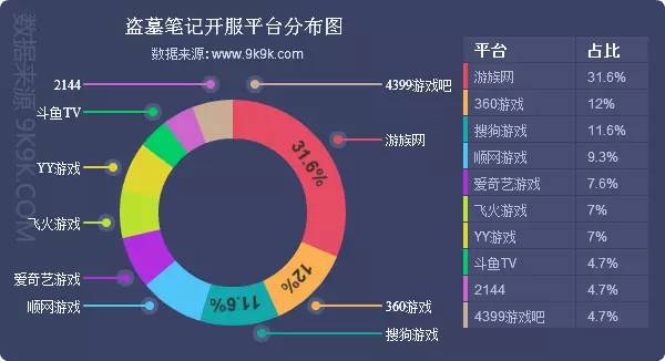 点评:本周《盗墓笔记》开服总数也略有下降,其在360游戏的开服频率有所下调,其他各平台分布占比都表现稳定。