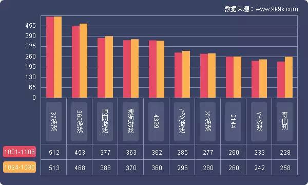 点评:本周运营平台开服排行前三为:37游戏、360游戏、顺网游戏;榜单排名未发生太大变化;本周榜单平台共开服3350组,占一线平台开服总数的56.8%;其中开服前三平台共开服1342组,占榜单开服总数的40.1%。