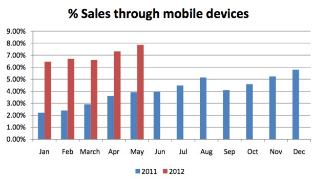 来自Affiliate Window的白皮书显示,2012年5月份来自Affiliate Window网络的销售中有8%来自移动,高于去年同期的3.92%。
