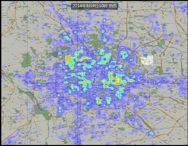 通过对比,我们可以发现城市白天和黑夜的不同形态。第一种空间,白天熙熙攘攘的金融街、国贸、西单、王府井等商业就业中心,到了晚上一片寂静;第二种空间,集商业、就业、居住于一体的中关村、五道口、六道口、知春路等地,无论白天黑夜均集聚大量人气;第三种空间,回龙观、天通苑、北苑、宋家庄等主要以居住为主的地区,体现了睡城的基本特征。由此,大数据可以帮助我们了解城市居民如何使用城市空间,进行实时动态监测。