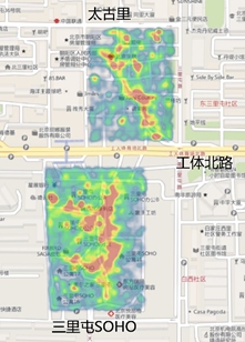 由图可知,就业中心主要集中在:中关村、知春路、朝阳门-建国门-国贸一带、王府井-东单、金融街、西单、西直门、上地、望京、东直门、亮马桥、朝阳路十里堡段、惠新西街南北口、五道口、六道口等(北京南站因处于交通枢纽而聚集较多人群)。