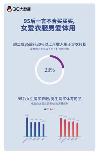 倚靠着父母辈的财富积淀,在宽裕富足环境下长大的95后们,对于“买买买”这件事,自然毫不手软。超二成以上的95后会花费30%以上的月收入用于穿衣打扮,根据唯品会数据显示,对于年纪小于21岁的95后,购买奢侈品的占总消费的32%,购买力绝对在线!