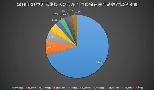 2016年第三季度中国无线接入器市场不同传输速率产品关注比例