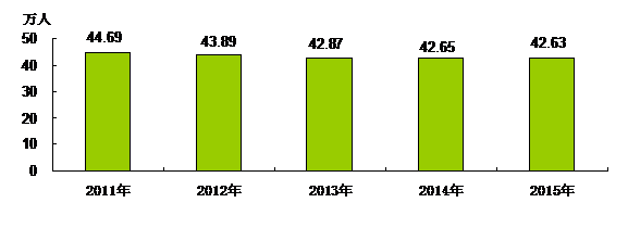 社会保障:年末参加城镇职工基本养老、基本医疗、失业、工伤和生育保险人数分别为 1424.3万人、 1475.7万人、 1082.3万人、 1020.1万人和 941.7万人,分别比上年末增加 31.7万人、 44.4万人、 25.2万人、 59.1万人和 26.1万人;分别比 2010年增加 441.8万人、 412万人、 308.1万人、 196.3万人和 569.5万人。年末参加城乡居民养老保险人数 187.6万人,其中农村居民参保人数 174万人,参加城乡居民养老保险人数比上年末增加 1.4万人。