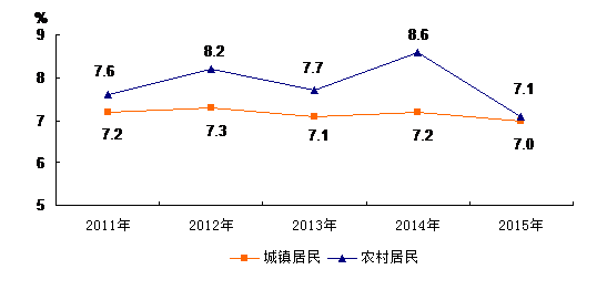 图 10 2011-2015年城乡居民人均可支配收入实际增速
