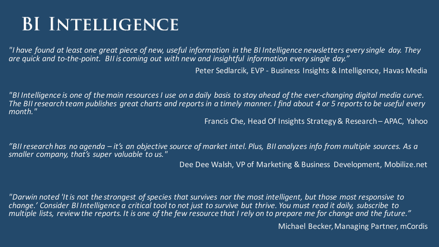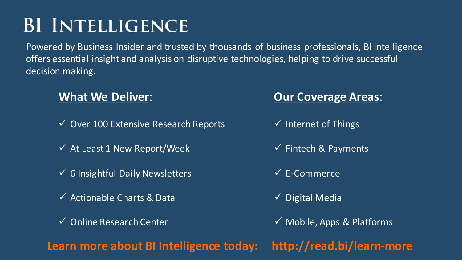 BI Intelligence:2016年全球互联网发展研究报告 PDF版下载可加入我们小密圈,199IT感谢您的支持! 更多阅读:CNNIC:2014年乐山市互联网发展研究报告BI Intelligence:2012年全球移动旅游市场规模超100亿美元K-12报告:2017-2018全球数字学习现状BI Intelligence:预计2018年全球智能手表销量达到9160万部全球互联网产业研究之巴西篇(二)Avazu:全球互联网产业研究之巴西篇利基研究院:农业供应链金融发展研究报告BI Intelligence:亚马逊如何构建自己的移动互联网帝国BI Intelligence:报告显示HTML5将最终战胜本地移动应用BI Intelligence:研究显示HTML5或需更多时间才能战胜本地化应用WhoIsHostingThis:全球互联网主宰者—信息图微软:全球互联网“身份失窃”每年导致50亿美元损失BI Intelligence:美国社交网络用户报告 女性更青睐FacebookBI Intelligence:调查显示美国社交媒体Facebook用户收入最高 年收入超7.5万美元BI Intelligence:社交网络调查分析:Facebook被中年人占领