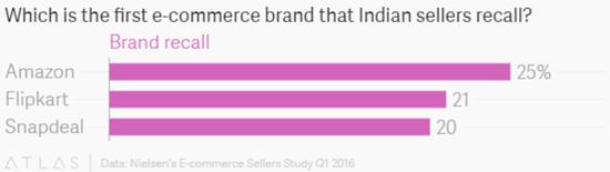 外来电商Amazon在印度攻势非常猛烈,2016年6月份的一项尼尔森研究报告显示,亚马逊是印度卖家最钟爱的电子商务品牌,其次是Flipkart。