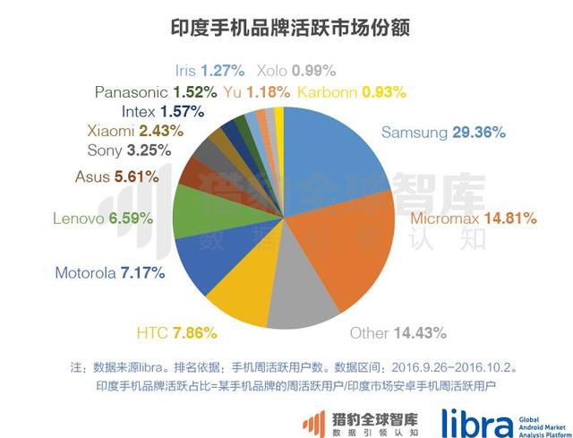 由libra的数据可以看出,在手机存量市场上,中国的联想可以占到印度手机市场份额的第三位(联想+摩托罗拉),小米手机也进入到了前十。