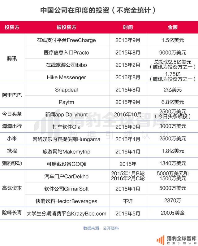 中国企业在印度投资的案例不在少数,例如滴滴出行3000万美元投资印度打车软件Ola;阿里巴巴加大在印度的投资力度,投资6.8亿美金入股印度电商PayTM等,2015年以来,中国互联网企业已经在印度开启了“买买买”模式。