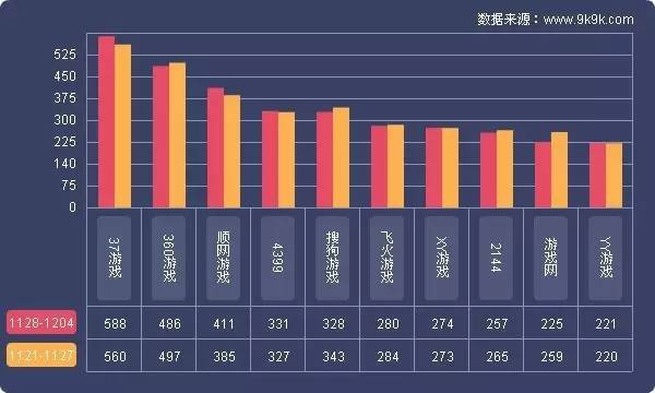 点评:本周运营平台开服排行前三:37游戏、360游戏、顺网游戏;其中4399击败搜狗游戏,本周重新夺回榜单第四的位置;本周榜单平台共开服3401组,占一线平台开服总数的56.5%;其中开服前三平台共开服1485组,占榜单开服总数的43.7%,较上周增涨1.5%。