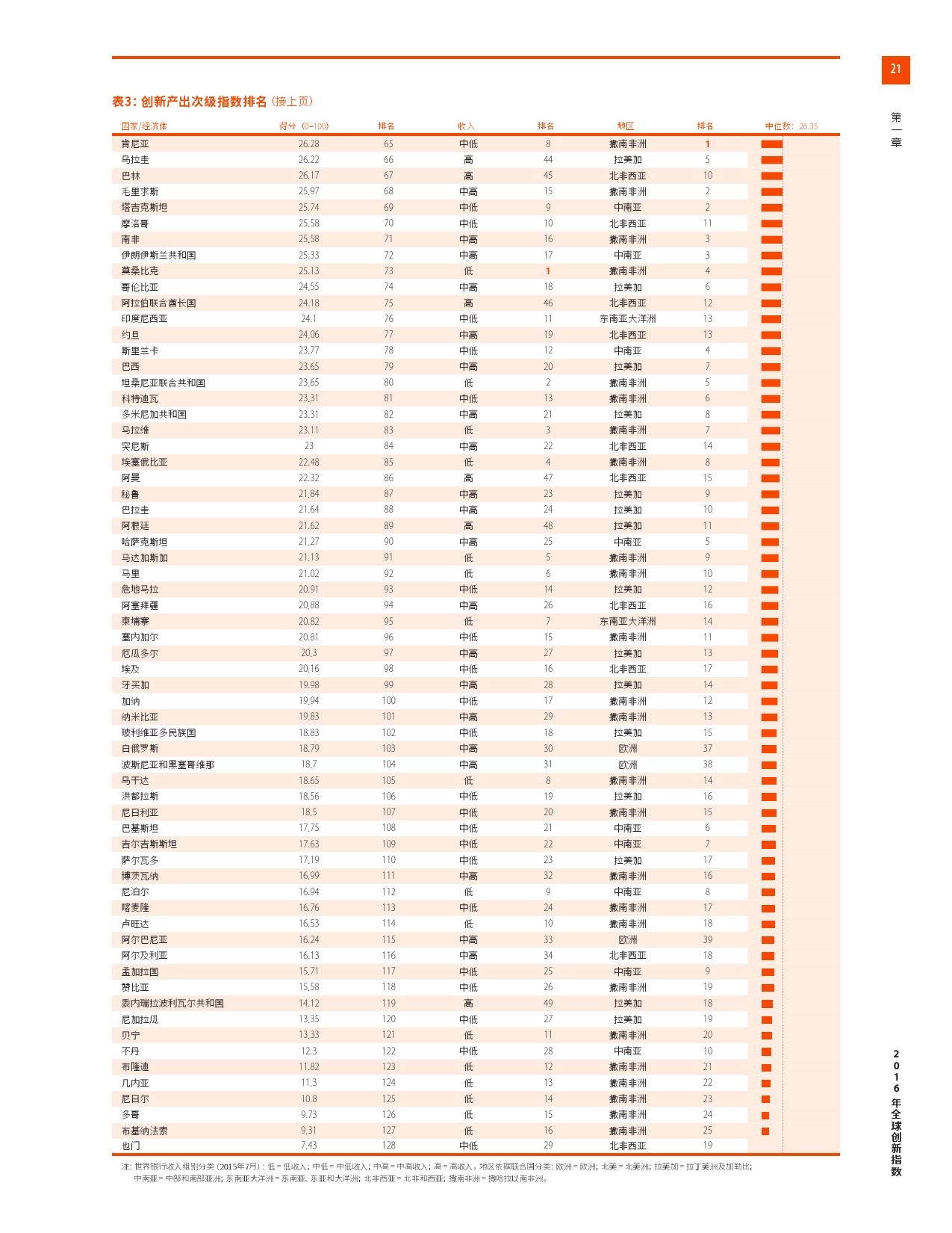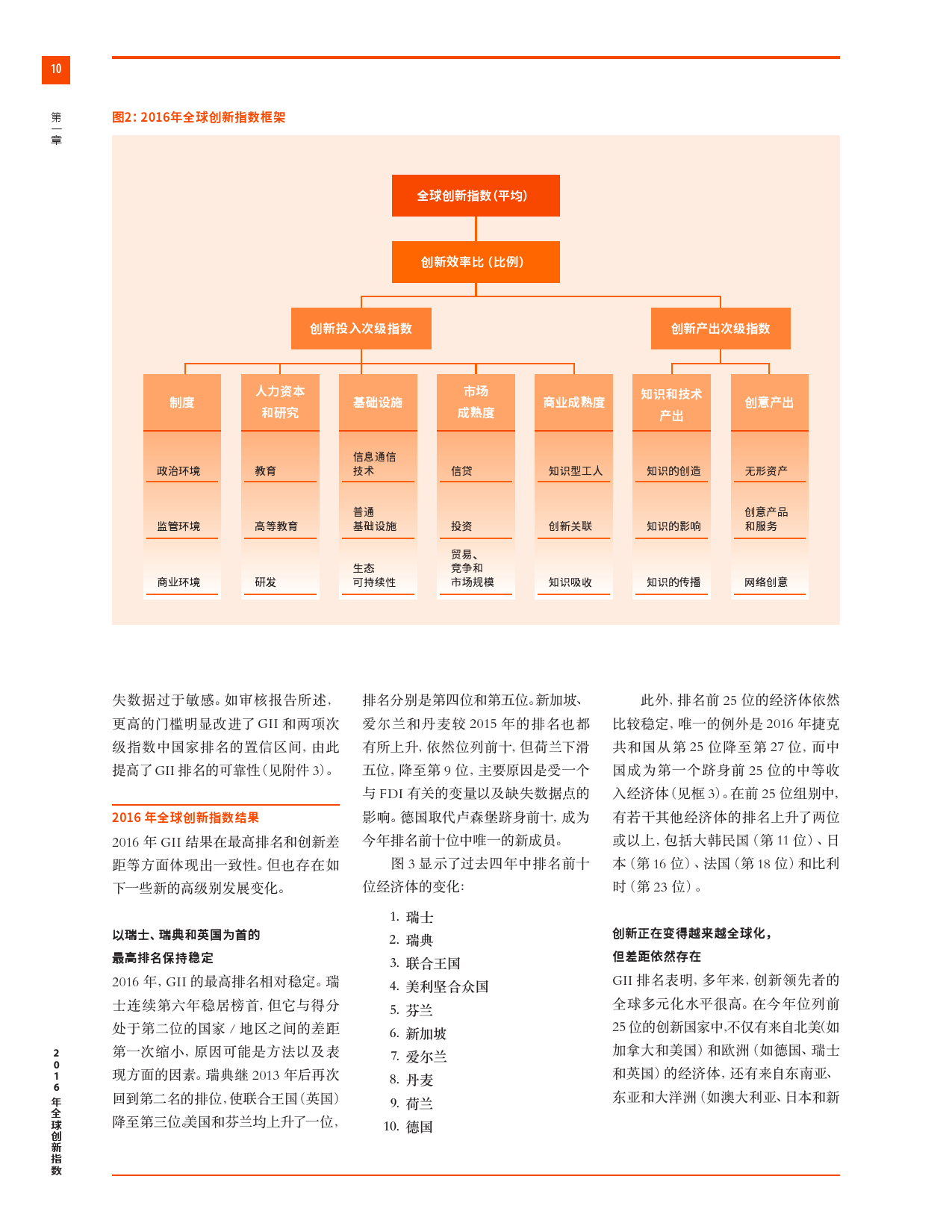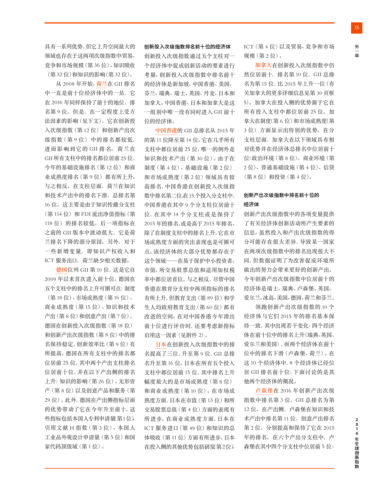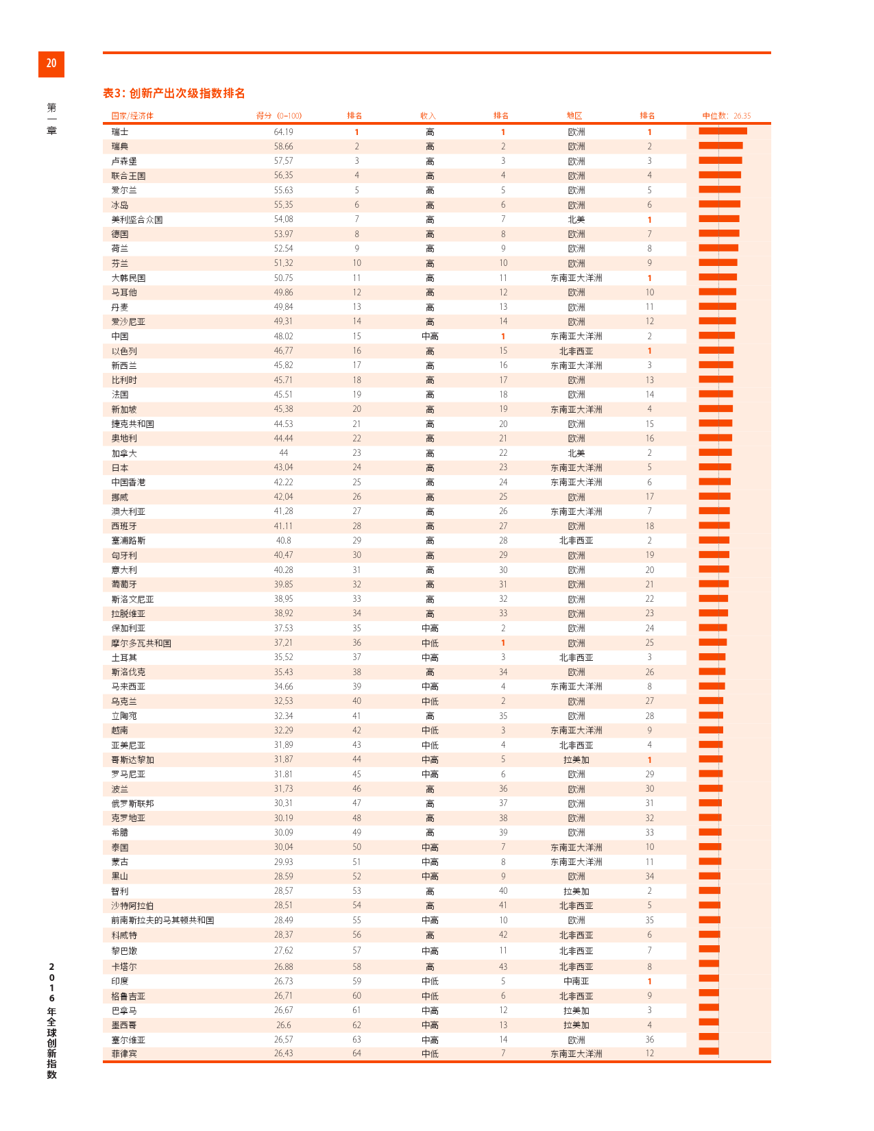 2016年全球创新指数前25强创新经济体中,有15个来自欧洲,瑞士连续六年稳居榜首,其次是瑞典和英国。亚洲地区的新加坡(第6位)、韩国(第11 位)、中国香港(第14位)、日本(第16位)也稳居前20强行列。