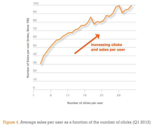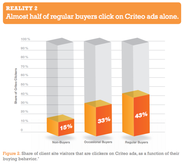 Criteo:点击广告越多的人,购买的商品也越多 根据展示广告机构的新报告Criteo,点击过banner广告的用户在随后购买商品金额是是没点击banner广告的用户的三倍 该报告分析了曝光在定向广告的用户的购买历史记录,发现点击越频繁的用户他们的购买也更为频繁 Criteo的研究还发现在Criteo客户电子商务网站比较频繁的购物者(Q1购买超过5及5次以上)中,有超过一半点击Criteo的广告 更多阅读:Ambassador:您真的相信线上广告吗?comScore:网络广告经济学,如何保证广告展示价值eMarketer:2012年美国富媒体广告市场规模为18.2亿eMarketer:更多广告主、更多广告形式为实时竞价带来更多资金White Ops:2019年网络广告欺诈流量报告eMarketer:2017年美国网络展示广告程序化购买支出达325.6亿美元IAB:2017上半年英国网络视频广告支出同比增长46%Econsultancy:40%的发行商表示网络广告收入萎缩或停止增长WARC:2019年全球广告收入将达到6160亿美元Venturebeat:Banner广告仍然有效,但会持续多久呢?eMarketer:2019年亚马逊美国网络广告净收入将达到100亿美元益百利:一半的营销者在他们的电子邮箱营销中使用过动态GIFDoubleClick:2012展示广告趋势报告Datalicious:多渠道归因研究发现Facebook广告价值被低估至少8倍ADWEEK:广告主认为游戏应用的“获奖”方法能够比显示广告创造更多销售