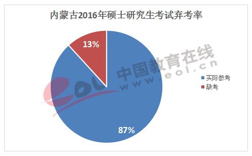 内蒙古自治区2016年共有30,945人报考研究生考试,4141人弃考,弃考率约为13%。
