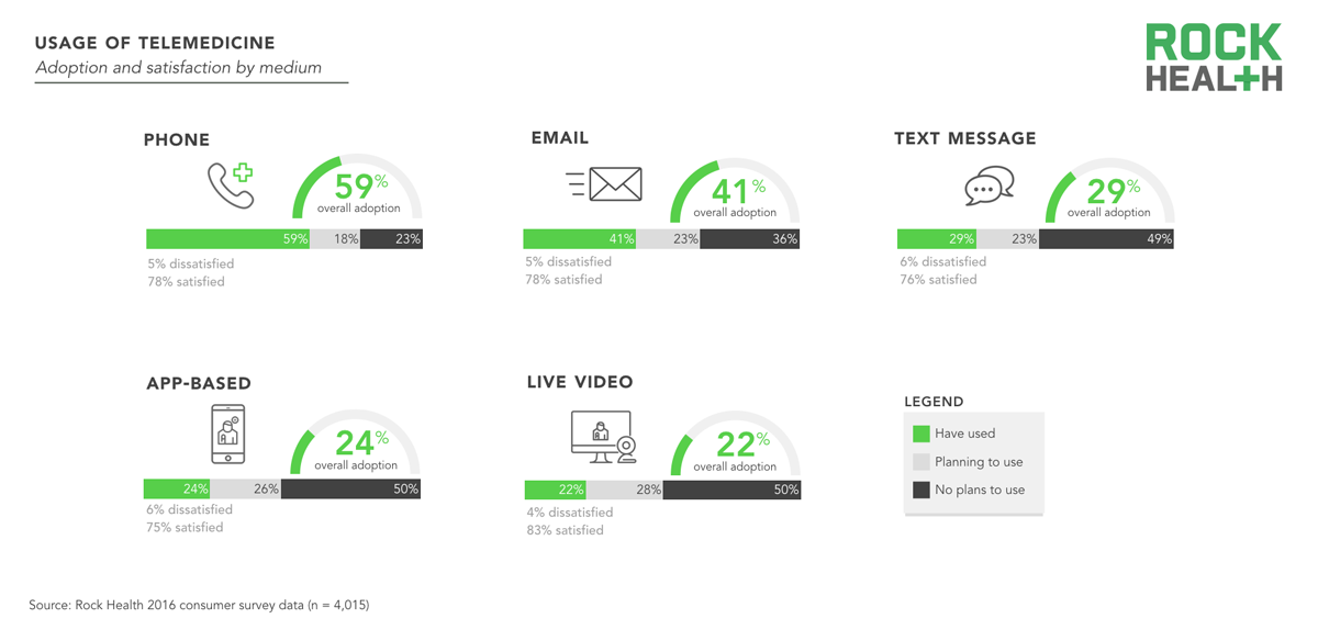 21.基于视频的远程医疗采用率从2015年的7%增长到2016年的22%,其中大多数使用发生在过去三个月。