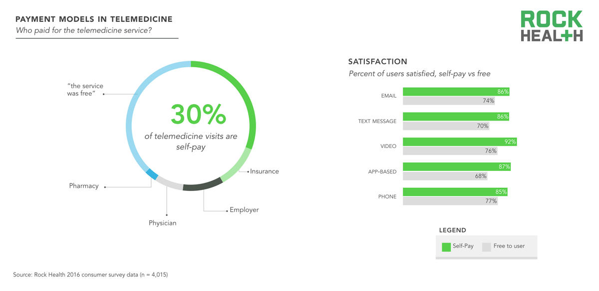 25.在所有远程医疗平台上,满意率均高于75%。 自助支付服务的消费者更加满意。如果医保覆盖数字卫生技术,这将推动采用率的增加。