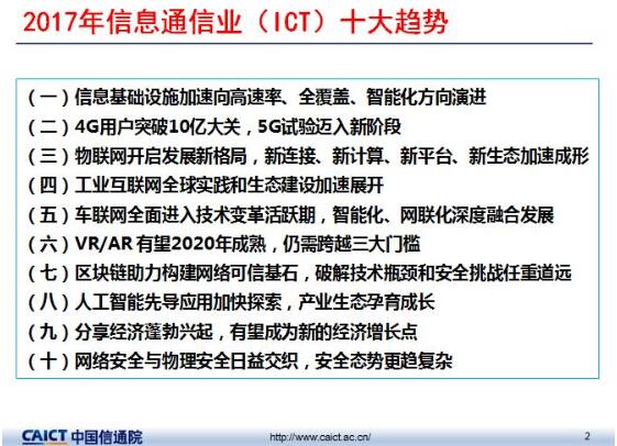 以下是中国信通院总工程师余晓晖发布的2017年ICT十大趋势具体内容: