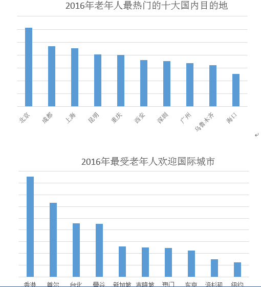 北京、成都、上海、昆明、重庆、西安、深圳、广州、乌鲁木齐和海口是老年人最喜欢的10大国内游目的地。成都、昆明、重庆生活节奏较慢,旅游资源丰富,成为不少老年人选择阶段性养老的目的地之一。