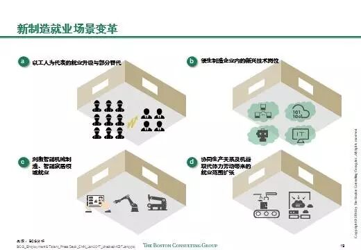 数字技术的发展为中国制造带来了向新制造转型的契机。波士顿认为,新制造在短期内并不会大规模缩减整体就业需求,反而会创造更多、更广、更具价值的就业机会,并倒逼就业人群技能提升。同时,新制造能带动产业升级、刺激行业竞争、降低工业品价格、创造更大的市场,从而间接创造就业机会。