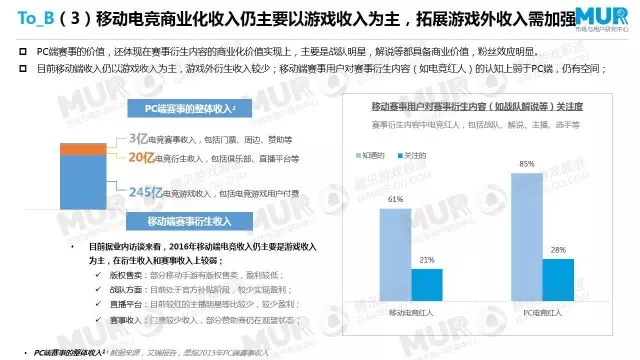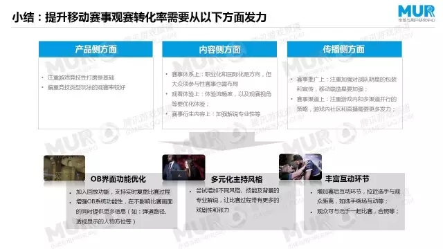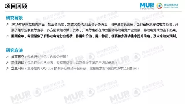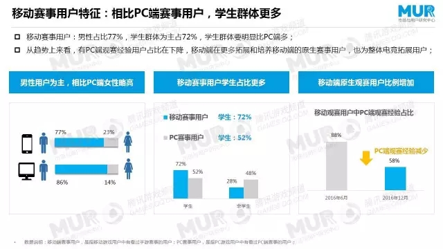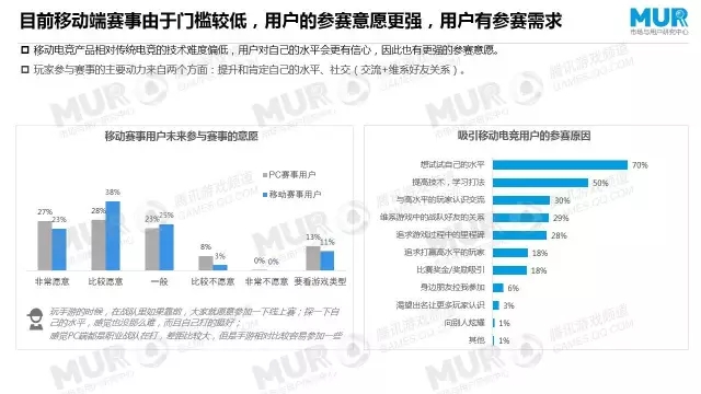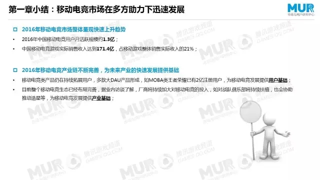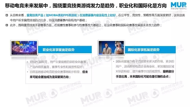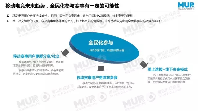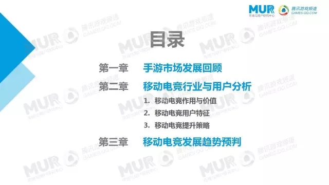 腾讯:中国移动电竞行业与用户研究报告 腾讯游戏频道联合腾讯互娱市场部市场与用户研究中心,结合移动电竞行业现状,深入调研,于2017年1月17日中国风云榜盛典现场,正式发布《中国移动电竞行业与用户研究报告》,除呈现一份详实准确的数据分析报告,也将对中国移动电竞的未来发展趋势进行预判。 以下为报告全文: 更多阅读:电竞行业报告:产业规模持续扩张 未来空间巨大wearesocial:2014年中国的社交、数字和移动究竟谁是移动电子竞技的消费者?Newzoo:2018年全球移动市场报告Ericsson:2023年第二季度全球移动用户总数为83亿人We Are Social:2016年全球互联网、社交媒体、移动设备普及情况报告WeAreSocial:2015年8月中国互联网、社交、移动和电子商务最新数据ofcom:2014世界杯将会“最移动“移动智能设备使用情况大调查数据—信息图QuestMobile:2025年10月中国新中产规模达2.78亿Soul:2025年前8月营收16.83亿元,同比增长17.86%腾讯:2025年Q2雇员达11.12万,微信月活14.11亿QuestMobile:2025年9月全网用户12.69亿,同比增长2%GSMA:2025年移动性别差距报告凯度:2025年中国品牌百强总价值1.21万亿美元,同比增长25%