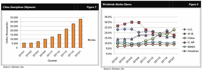来自投资公司Needham & Company的分析师Charlie Wolf周一发布了智能手机行业季度报告。报告显示,今年第二季度,中国智能手机的出货量同比增长了164%,总数达3310万台,超越同期美国售出的2500万台,成为全球最大的智能手机市场。