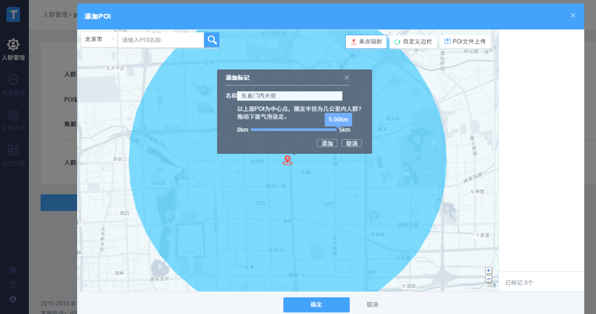 与传统媒体相比,移动互联网连结受众的最大变革是真正实现了线上线下的融合。通过LBS或者Wi-Fi技术,移动设备可以很好的记录用户的位置信息。而一些有场景的位置,也为构建受众提供了有效条件。例如4S店,景点,酒店,月子中心等等,我们都可以很快的想到他们代表着哪些人群。营销云全面开放TalkingData的位置服务能力,可以借助地理围栏实现构建对应地理位置的目标受众。