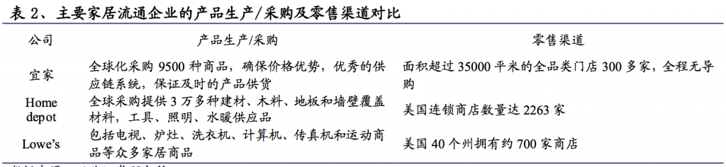 宜家创立的商业模式与当前行业既有的家居连锁市场没有本质区别,都属于大型独立店式的连锁零售。与一般家居企业不同,宜家深谙流通环节规模效应的准 则, 定位于全品类家居、仓储中心、连锁零售,致力于提供最具性价比的家居生活产品 , 而要保持这一竞争力则很大程度依托于公司强大的供应链效率。