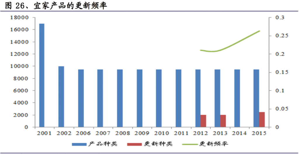产品价位通常低于传统经销商20%,比一般家居零售企业低约10%-15%,且每年保持超过2500种商品更新(占比25%-30%)和老产品的降价(幅度在5%-20% )。