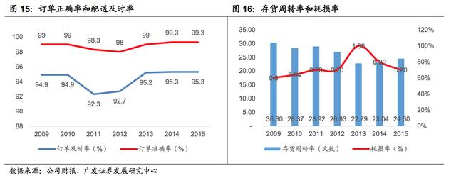 物流自动化节约人工成本 , 提高存货周转率和订单准确率 。( 近 年 来 公 司 存 货周转次数始终保持在25左右的较高水平,订单正确率达99.3%)