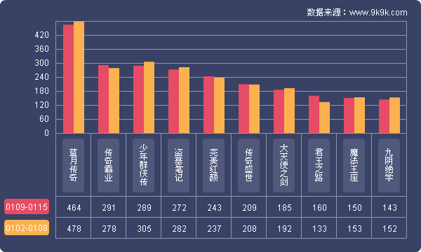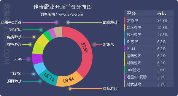 点评:《传奇霸业》本周开服微涨4.7%,其在快玩游戏的开服频率增加至5服/天为主要影响来源,其他平台开服保持稳定。新增分布占比平台迅雷牛X页游、酷我游戏。