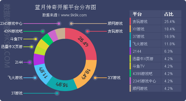 点评:本周《蓝月传奇》开服较上周减少2.9%,但其开服趋势依然保持稳定,各平台开服占比也均未发生明显变化。新增分布占比平台迅雷牛X页游、斗鱼TV。