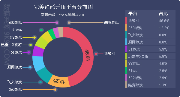 点评:本周《完美红颜》继续保持稳定的开服趋势,西游网开服占比为46.6%,仍接近半数,其他平台开服占比基本未发生变化。