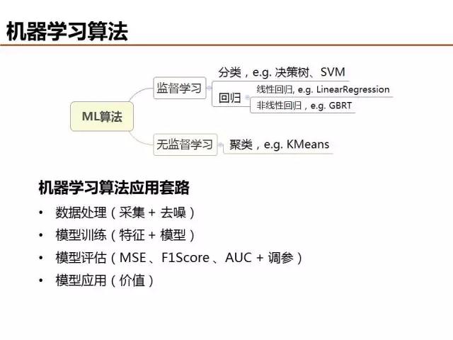 特征设计依赖于对业务场景的理解,可分为连续特征、离散特征和组合高阶特征。本篇重点是机器学习算法的介绍,可以分为监督学习和无监督学习两大类。