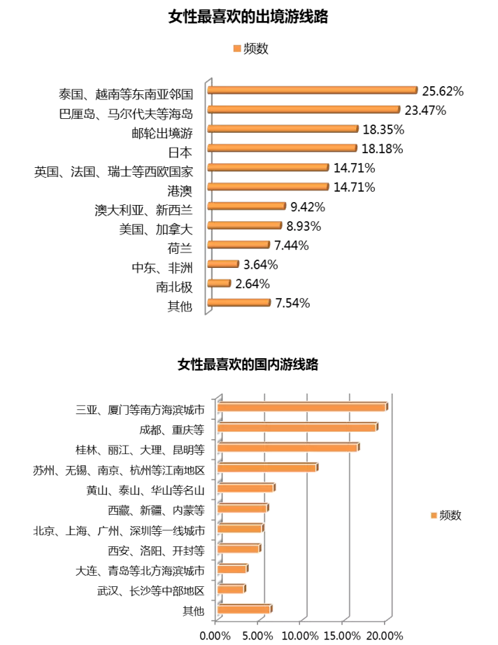 女性出境游最爱东南亚邻国及海岛,国内游最喜欢三亚、厦门