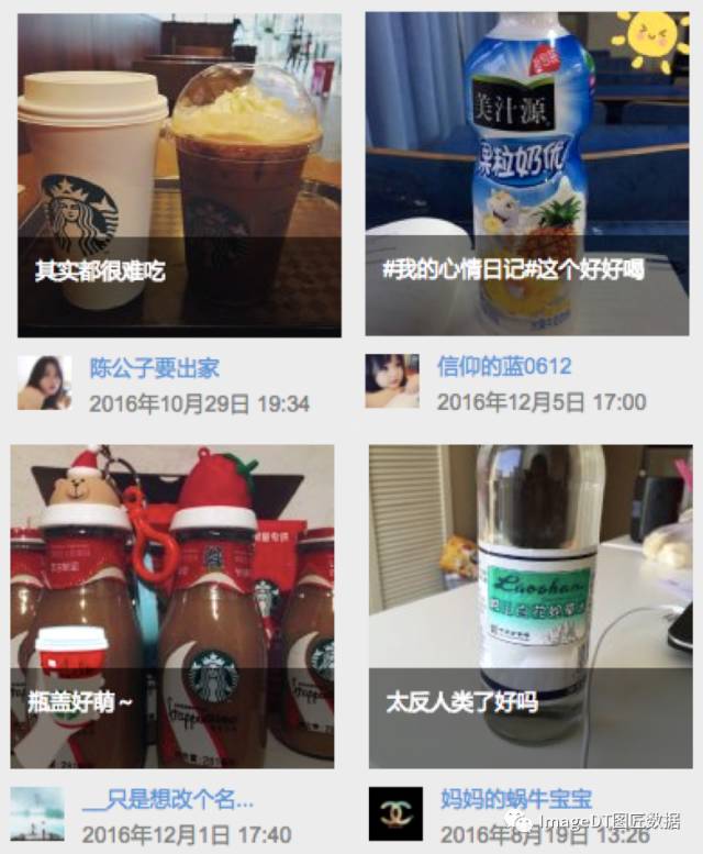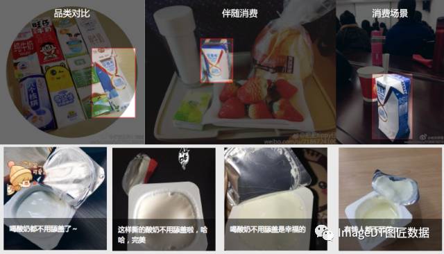挖掘丰富的图片内容。通过图像识别技术,一方面可以所有找到包含品牌、产品的图片,另一方面可以对图片内容进行深度地挖掘。以某酸奶产品为例,通过图片数据发现:常见的分享动机产品对比,通常是几个同类产品包装放在一起比较;常见的消费场景是教室、书房,说明学生是主要的消费群体;常见的伴随消费是水果,用酸奶做水果色拉;有趣的是,消费者经常会分享各种奇葩的“舔盖”经历。