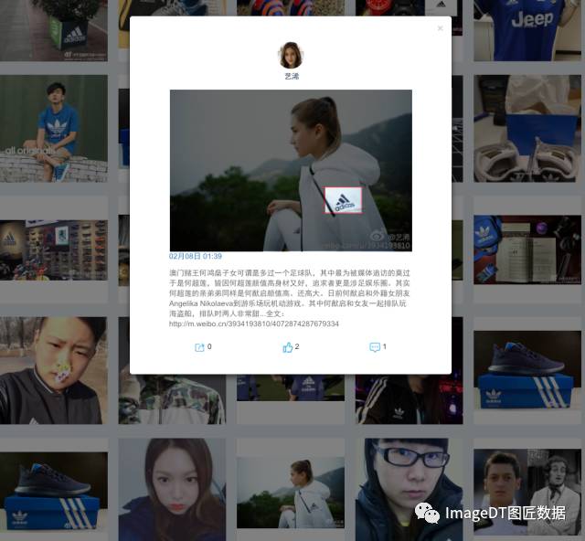 目前,ImageDT图片舆情已经正式,每日处理图片数据超过一千万张,识别对象覆盖品牌、人物、时尚、运动、购物、出行、观光、生活等各大领域。
