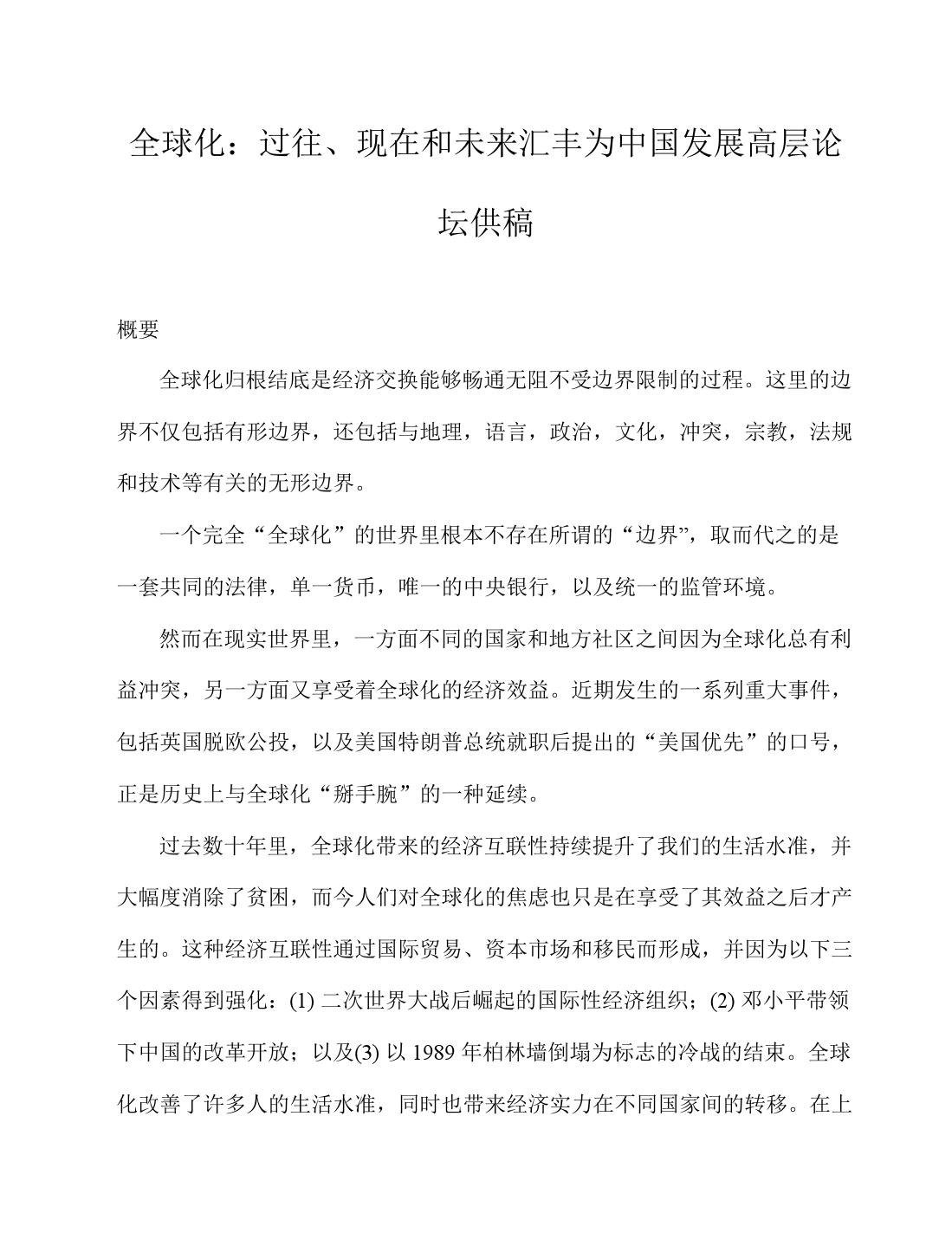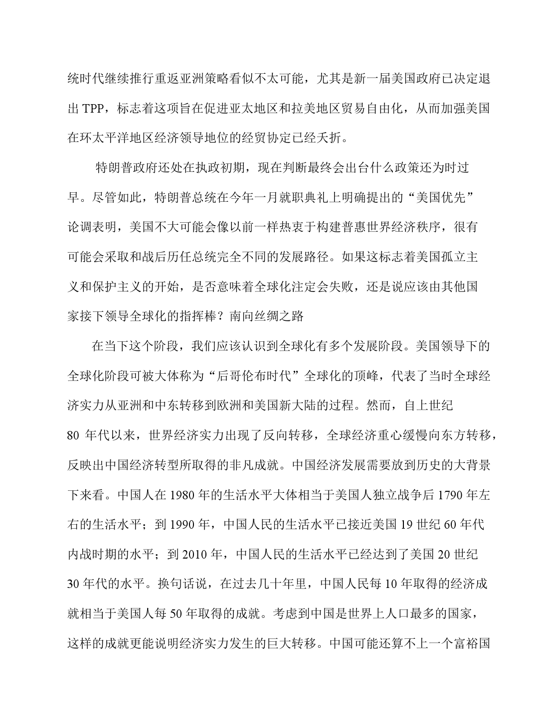 历史经验告诉我们,全球化并非只是一个单向车道 – 在很多时候,甚至在相当长一段时间内,全球化可能要经历一个反向过程。孤立主义、保护主义和利益冲突往往会造成各方共损,如果西方国家对全球化的支持逐渐减少,中国试图填补由此产生的真空地带将变得尤为重要。就像习主席今年1月份在达沃斯世界经济论坛上所说的,“我们要主动作为、适度管理,让经济全球化的正面效应更多释放出来”。