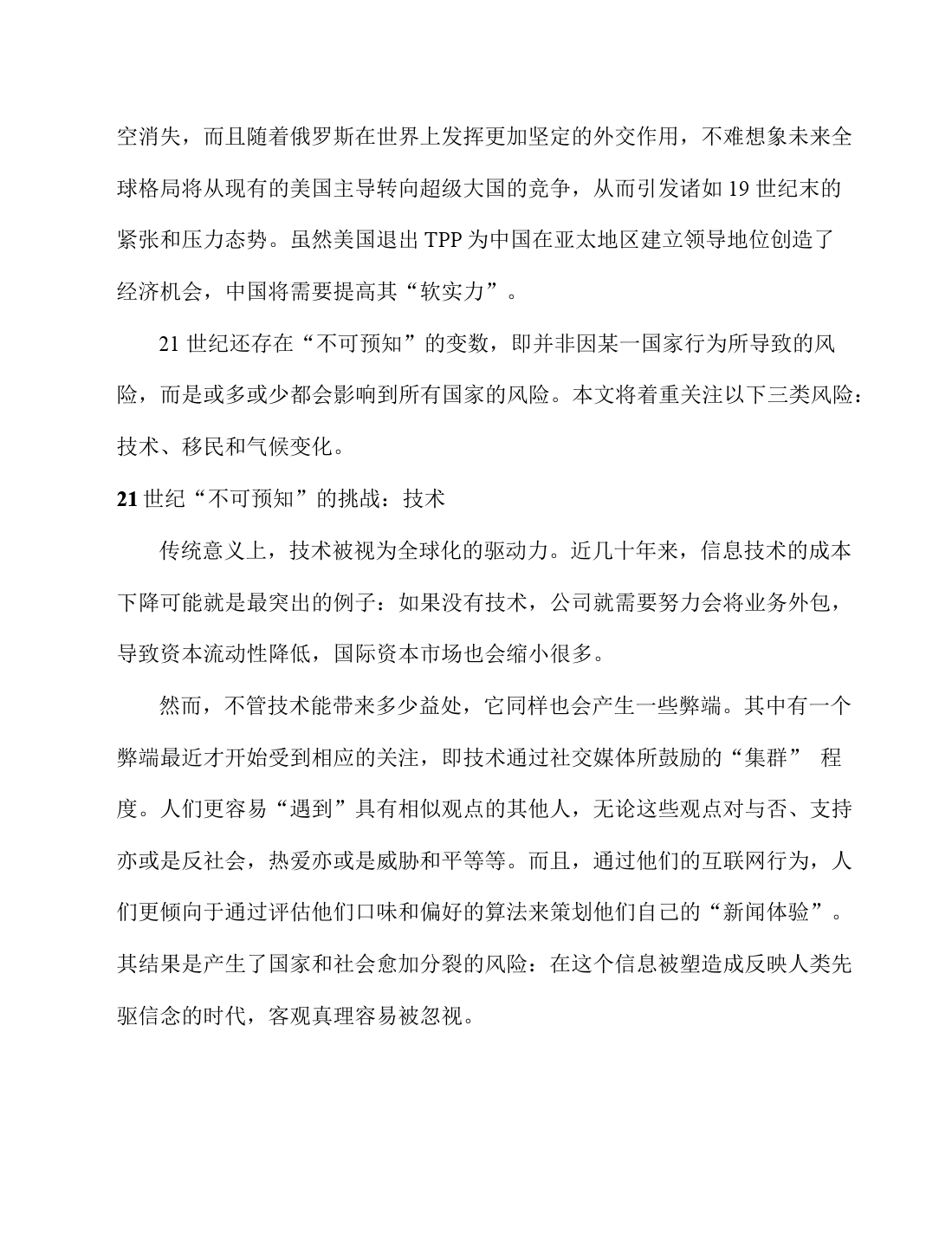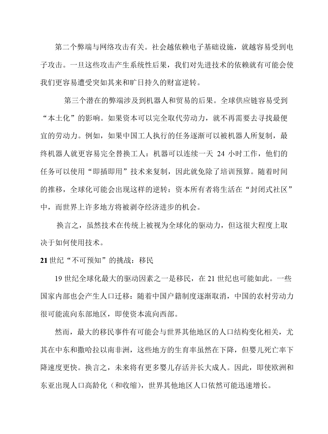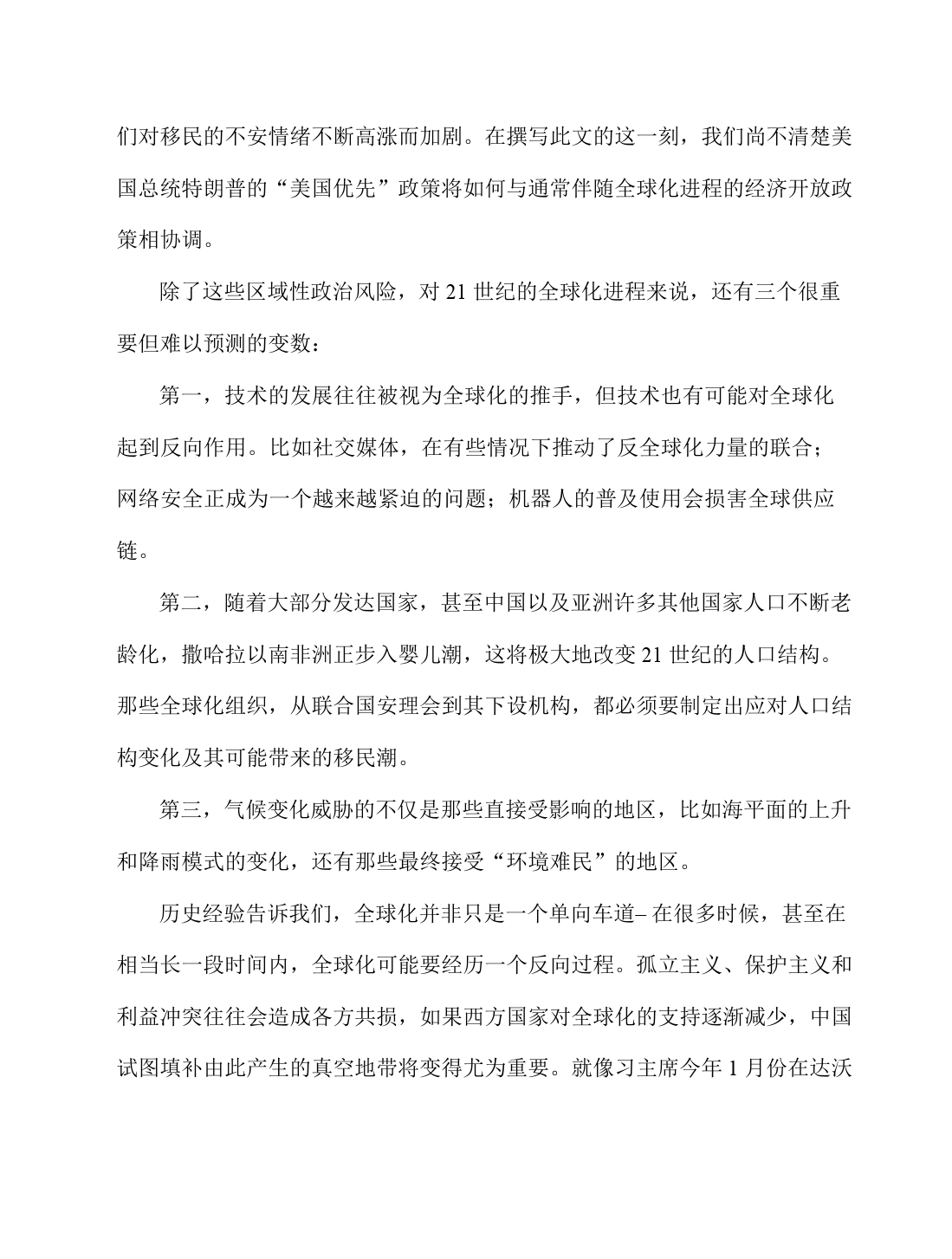 除了这些区域性政治风险,对21世纪的全球化进程来说,还有三个很重要但难以预测的变数: