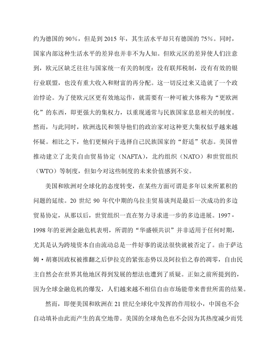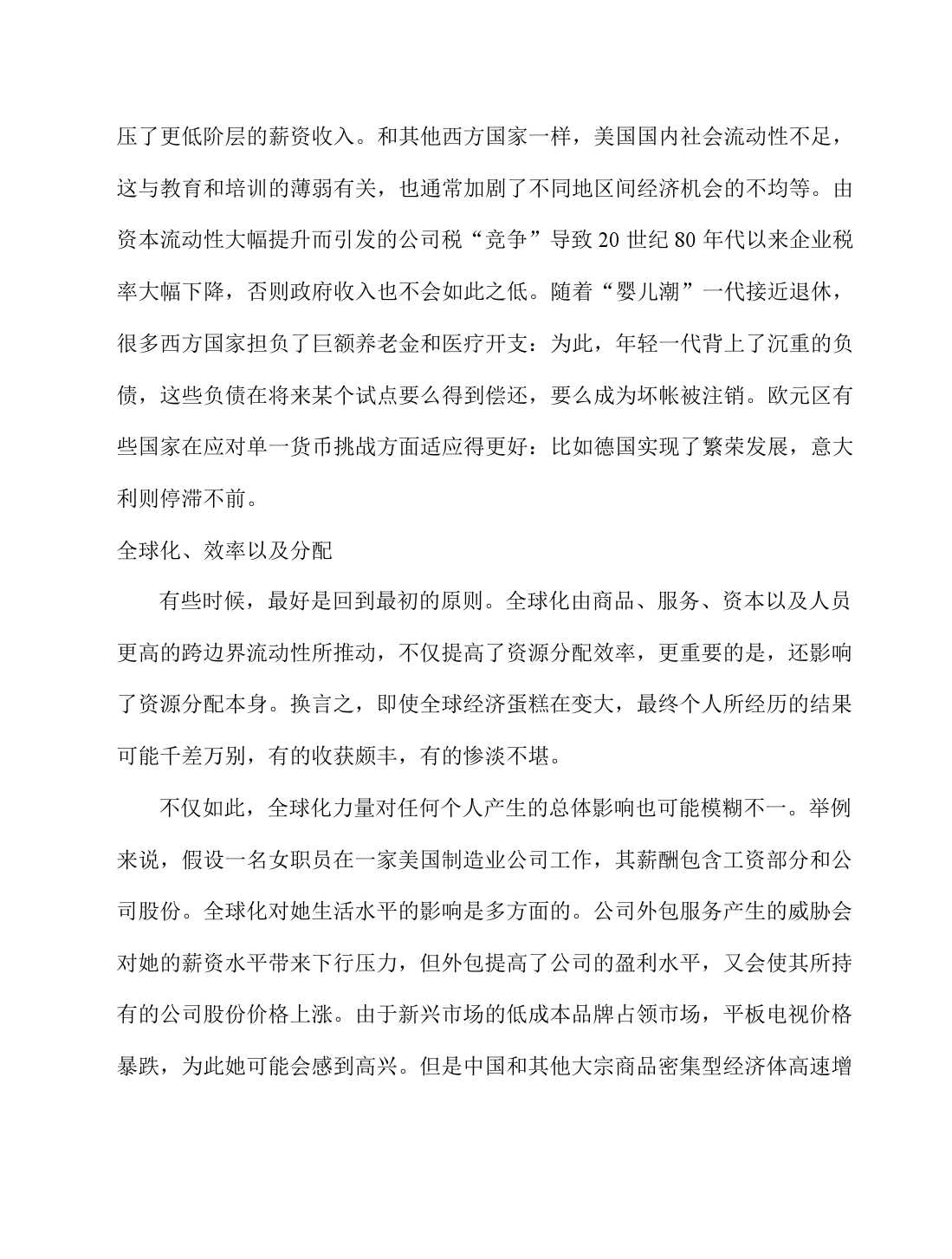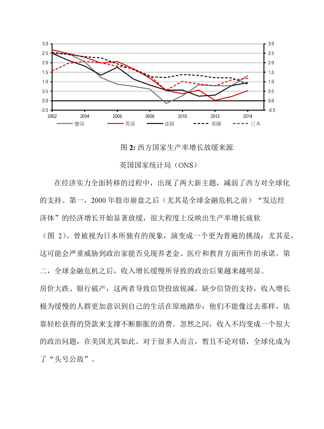 伴随着经济实力的转移,发达经济体国家因自身经济放缓和国内贫富差距急剧扩大对全球化愈加幻灭。这反过来又揭示了这样一种悖论:全球化在缩小国与国之间收入差距的同时,加剧了国内的贫富不均。