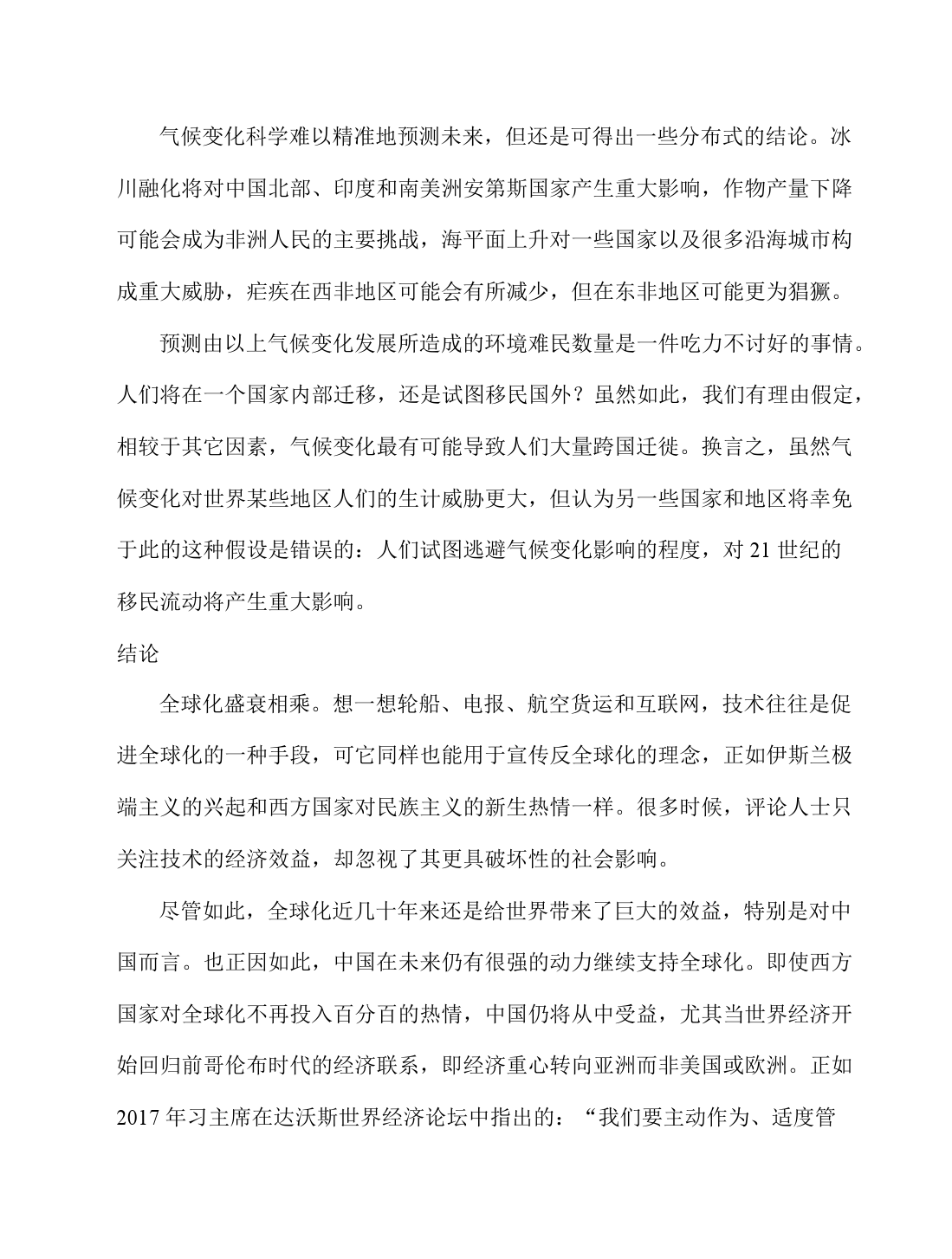 第三,气候变化威胁的不仅是那些直接受影响的地区,比如海平面的上升和降雨模式的变化,还有那些最终接受“环境难民”的地区。