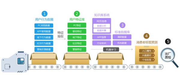 目前,【友盟+】的数据源主要来源于PC端、移动端、线下数据这三支渠道,而每一支渠道采集的数据种类又不完全一样。比如PC端数据会更多的聚集于页面跳转、浏览时长、浏览器信息等,移动端数据包括使用APP应用的各类信息,而线下数据更集中在地理位置、移动路线等。这些数据会作为原始日志进入存储平台中。第二步就是通过预定义的规则抽取数据中的特征信息,这些特征信息都和设备(或人群)相关,并能通过一个大ID关联库进行打通。
