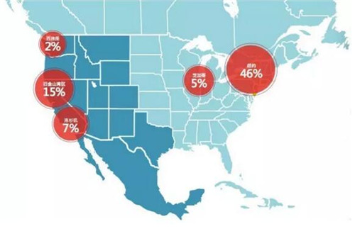 中国商业地产投资在美前五大投资市场为纽约市(46%),旧金山湾区(15%),洛杉矶(7%), 芝加哥(5%)和西雅图(2% )。