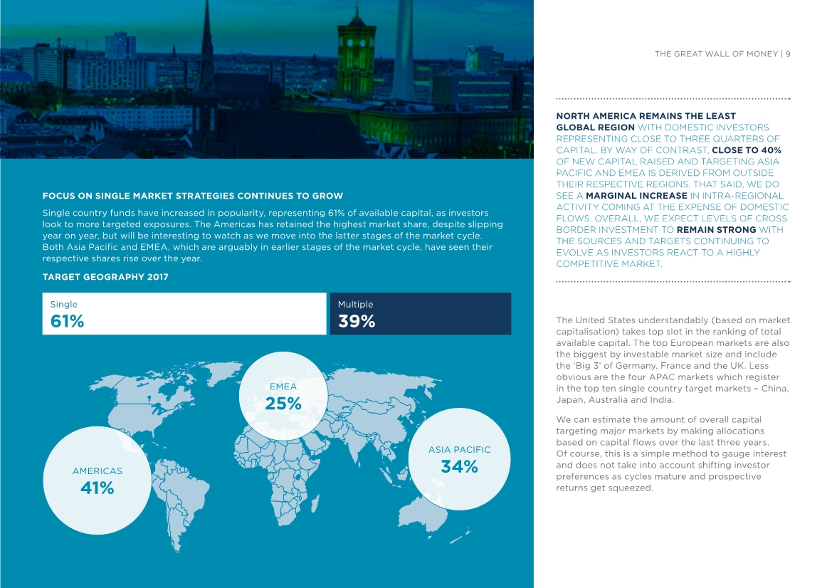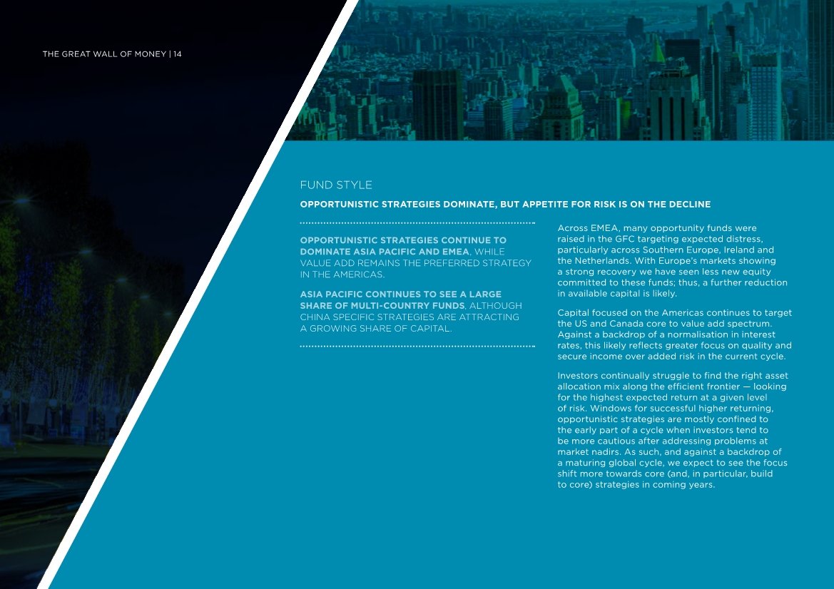 投资策略越来越关注单一地区或类型,这反映了追求有针对性的风险;但是也有例外,全球知名基金经理有更广泛的投资范围。