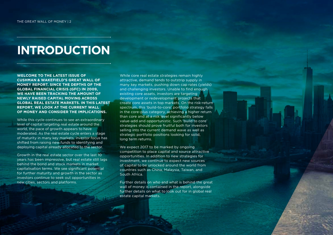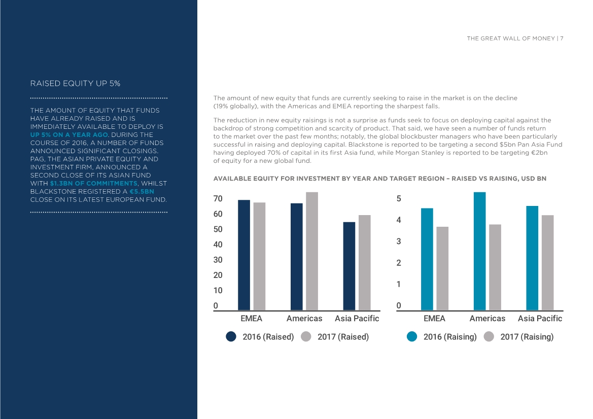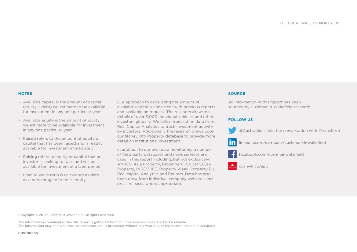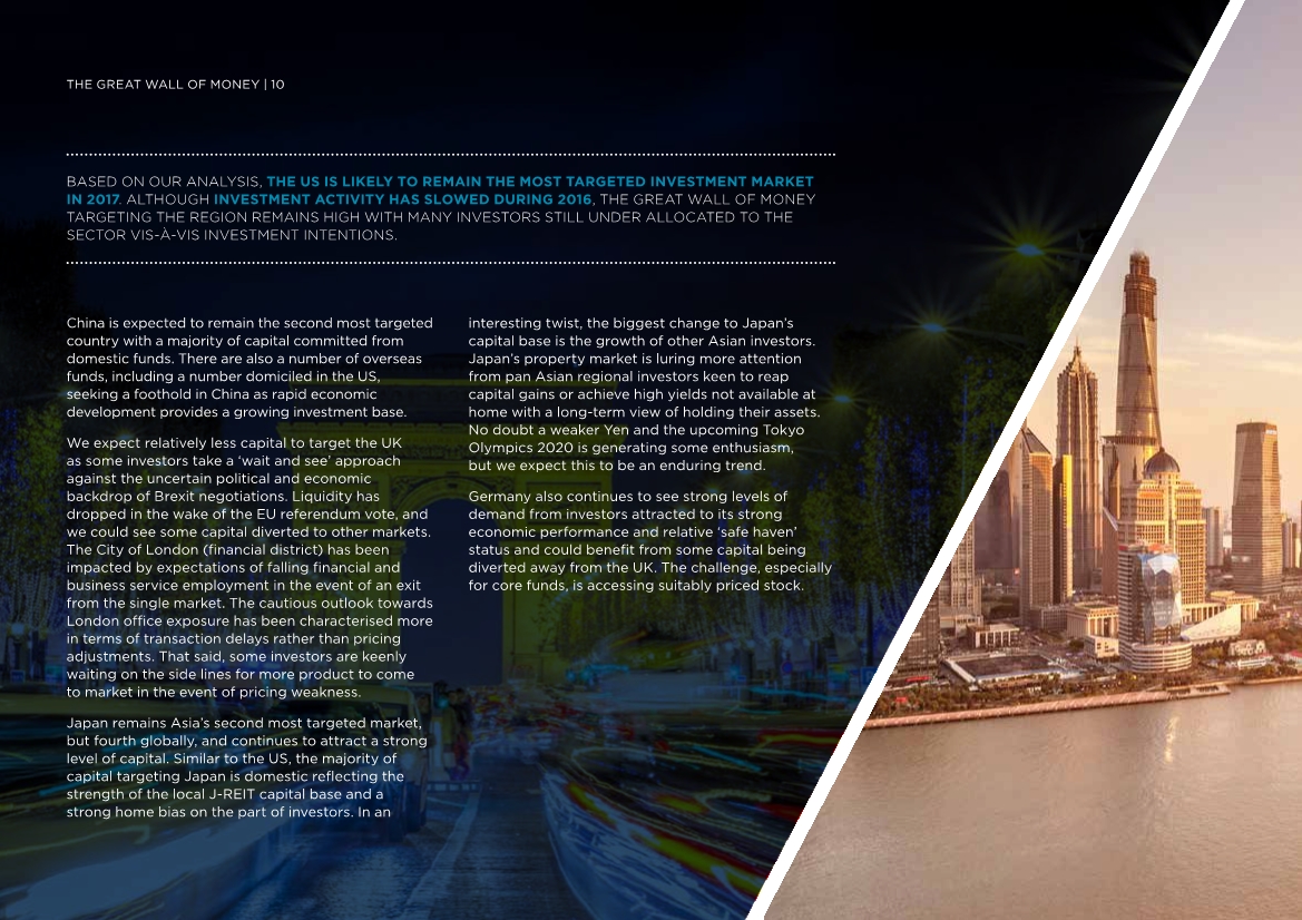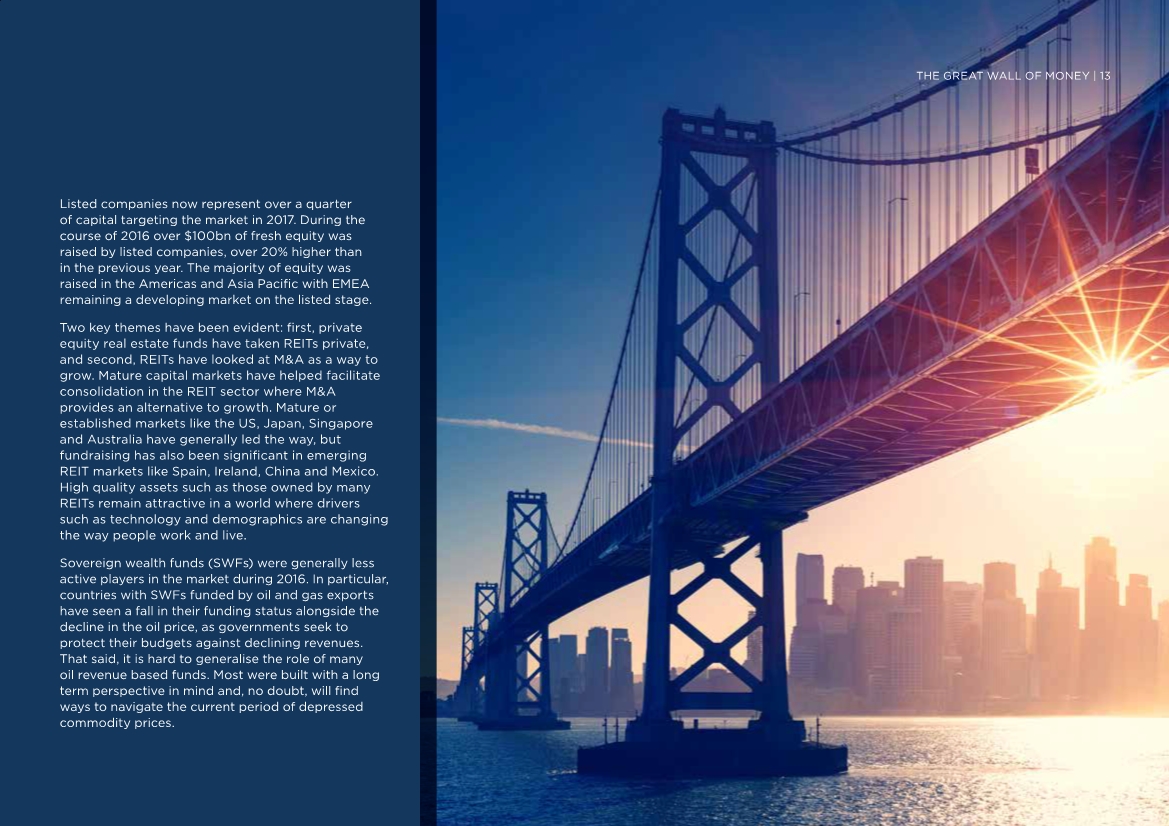 最新的”The Great Wall of Money“报告显示,2017年房地产业资金壁垒(债务和股权)首次呈现下降趋势。自2011年房地产业债务和股权达到4350亿美元后,2017年房地产业资金壁垒将比2016年下降2%,主要是由于现有债务水平下降。