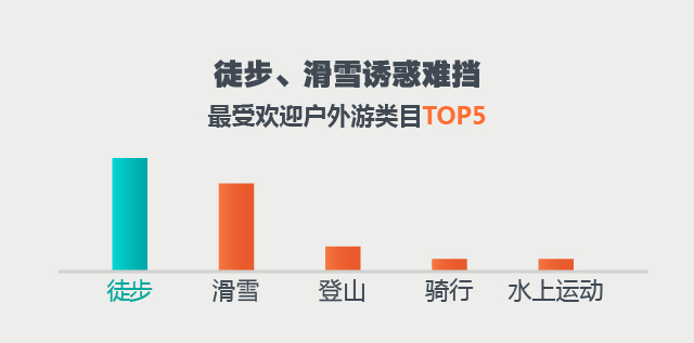 当前户外领域徒步、登山是大众户外旅游的热点,报告预计,伴随着消费升级,滑雪、骑行、滑翔伞、极地探险等更小众的领域将越来越受到广大户外游客户的青睐。与此同时,线路产品难度将出现分级,户外游参与者也将越玩越专业。